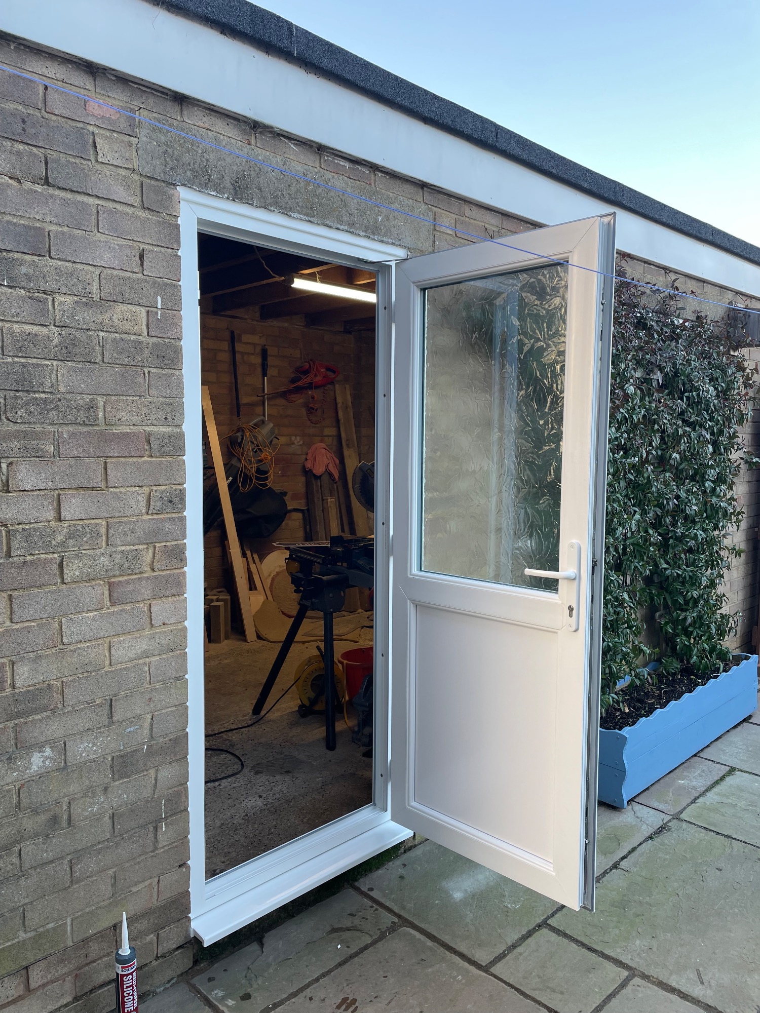 Remove existing glazing & rotten timbers around garage windows Supply & install replacement weather bar, surrounds & glazing beads